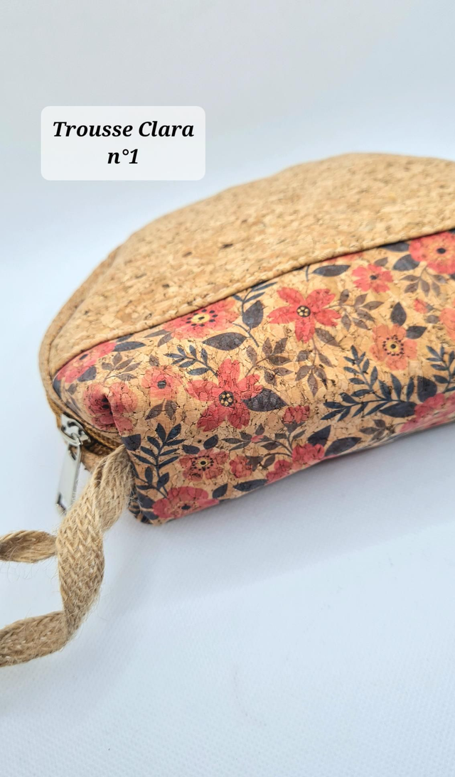 Trousse de toilette "Clara" en liège naturel et impr. fleurs n°1