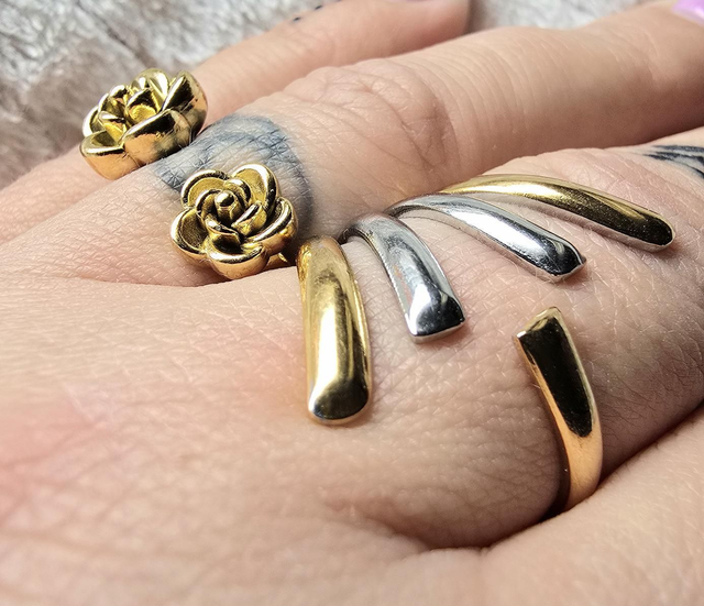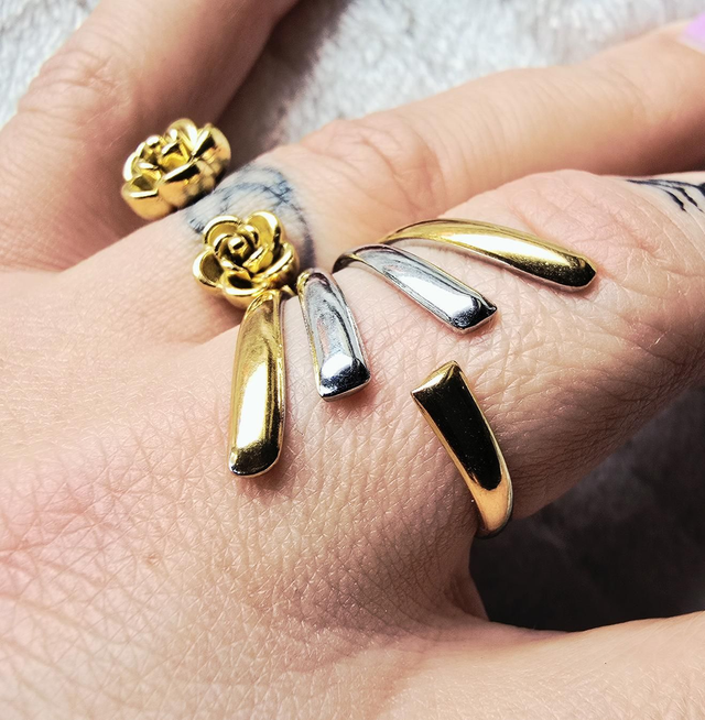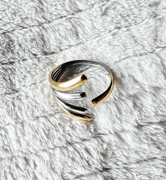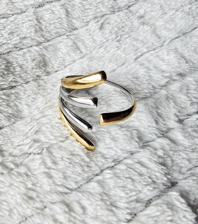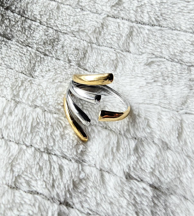 Bague "Lou" en acier bicolore, réglable à l'avant