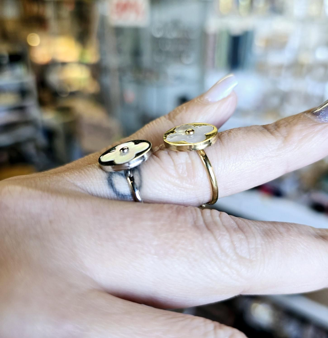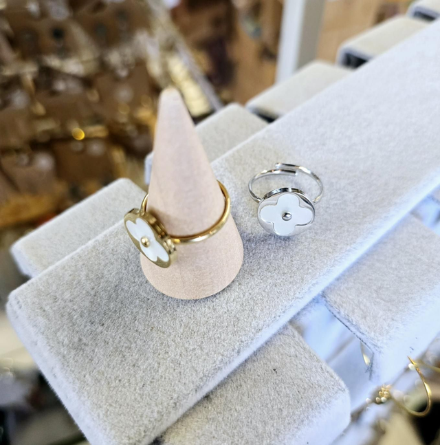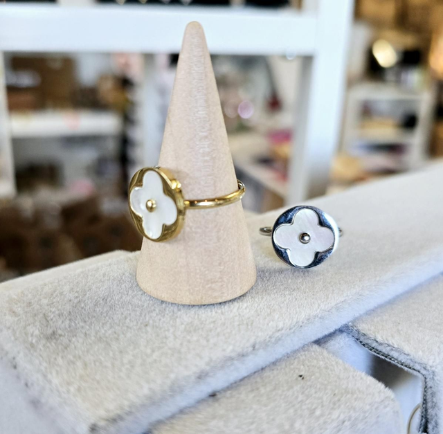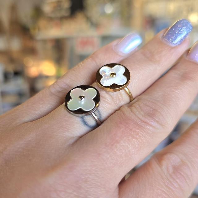 Bague plate réglable "Mary" en acier inoxydable doré ou argenté (nacre)