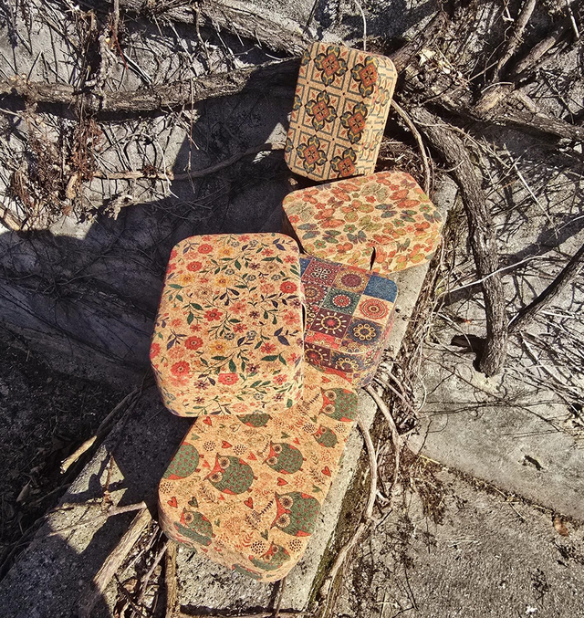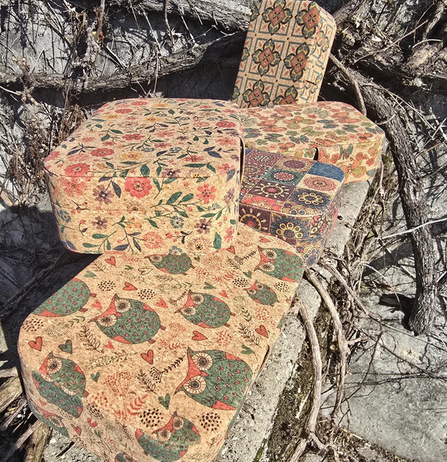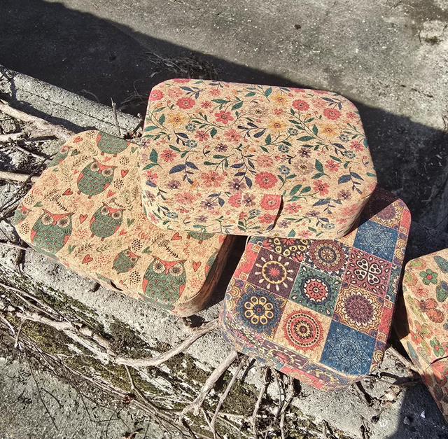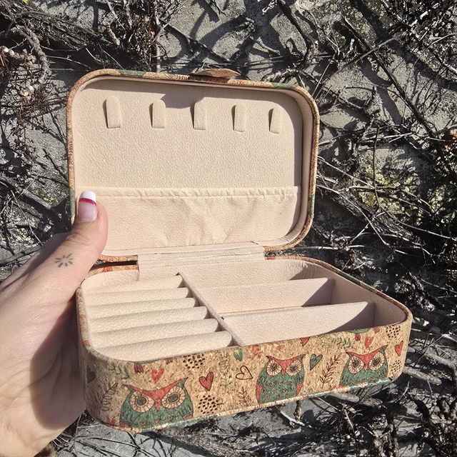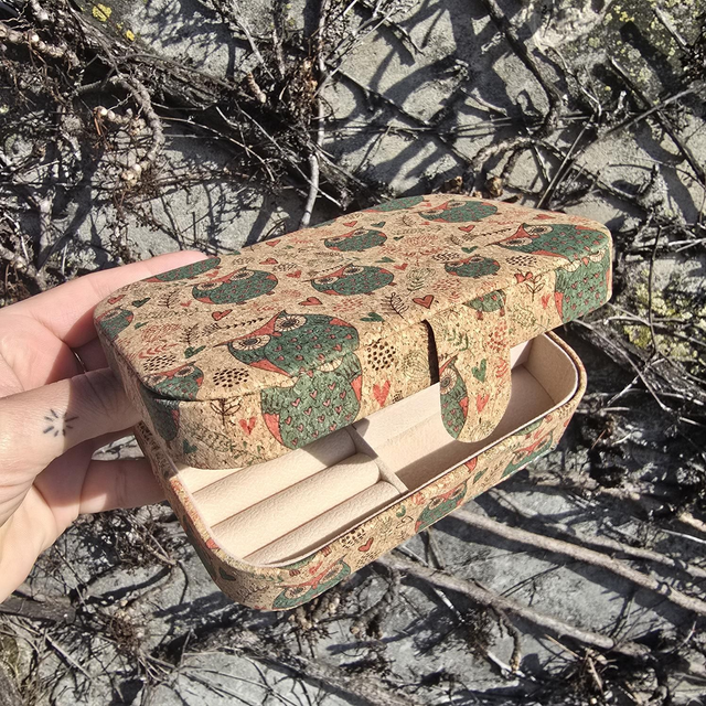 Boîte à bijoux rectangulaire en tissu de liège (5 imprimés à choix)